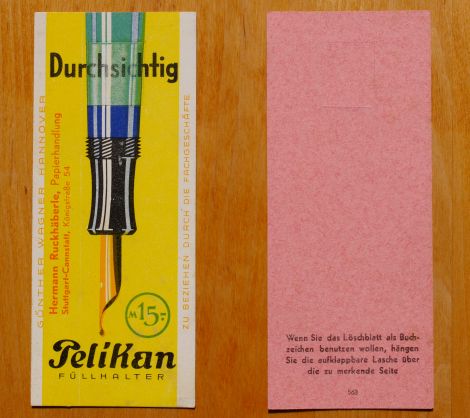![]() advertising approx. 1930, multiple usable as a blotting paper and also as a bookmarker. |