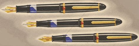 Typisch für die erste Modellreihe von Geha war das rotgoldene Geha Logo auf dem Kappenzierring. Diese Baureihe wurde dann 1956 schon wieder eingestellt. Alle Modelle gab es mit 14 Karat Goldfeder und preisgünstiger mit vergoldeter Edelstahlfeder. Die Modelle Regent 720 und 710 hatten eine Übergröße.