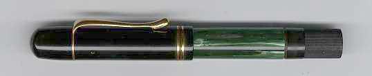 100 (1942) | grün marmoriert | schwarz, neues Logo auf Kappenkopf Kappenbänder gerillt, ohne Goldbänder |