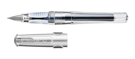 Zum 50 jährigen Jubiläum des legendären Pelikano Schulfüllers brachte Pelikan ein völlig neues, verändertes Design auf den Markt. Das Griffstück ist transparent mit drei Griffmulden und gibt Sicht auf den Tintenstand.